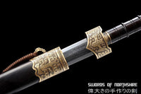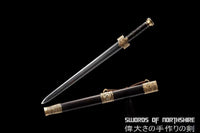 Warring States Jian Hand Forged Folded Damascus Steel Blade Battle Ready Chinese Sword Features: