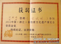 Master Shen Xinpei is the 4th generation of the Shen family, he's currently in charge of the Shen Guanglong Sword Workshop. He was born in 1948, and started to make swords with his father when he was 13 years old. He succeeded in following the sword making techniques learned from his father, and devoted his attention to making swords. He invented moldings and reformed the sword making processes, improving efficiency dramatically.